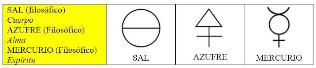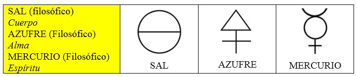 El juego de la trama y la urdimbre (los siete planetas y los doce signos) está enriquecido por los Tres Principios, Sal, Azufre y Mercurio.
