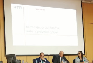 En la mesa de la conferencia se sientan Lorenzo Amor Acedo, Santiago Sesé Alonso (Presidente de la Cámara de Comercio de Santa Cruz de Tenerife),y Esther Martel Gil (Directora General de la Fundación MAPFRE Guanarteme). El Informe “El trabajador Autónomo ante la previsión social”, aspectos claves ha sido presentado por Elena Melgar Miguel, directora de Proyectos de ATA Federación.