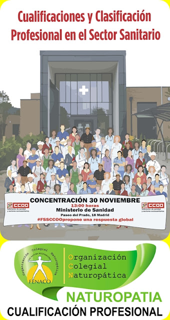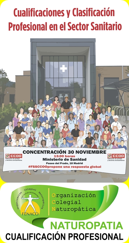 El próximo sábado 30 de noviembre la Organización Colegial Naturopática asistirá a la concentración convocada por la Federación de Sanidad y Sectores Sociosanitarios de CCOO (FSS-CCOO) en defensa de los derechos sociolaborales de los profesionales Naturópatas para reivindicar la Cualificación Profesional de Naturopatía que llevamos solicitándola más de una década. Acude a la manifestación, reivindicando con una sola voz los derechos SOCIOLABORALES de los Profesionales Naturópatas. Estaremos con una pancarta con el lema “NATUROPATIA CUALIFICACIÓN PROFESIONAL”