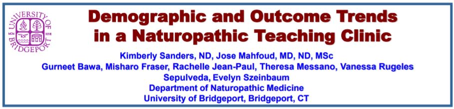 La Naturopatía es una forma de salud de “sistemas completos” que enfatiza la prevención y el tratamiento de enfermedades con cambios en el estilo de vida y terapias naturales. Este estudio de investigación tiene 2 objetivos. Primero, este estudio tiene como objetivo evaluar la demografía de los pacientes que buscan atención Naturopática en 2 clínicas de enseñanza naturista en los Estados Unidos y Canadá. A continuación, esta investigación tiene como objetivo estudiar la práctica clínica de la Naturopatía como ciencia de la salud global y sistémica mediante la evaluación de los resultados del paciente. Esta investigación está estudiando la Naturopatía como un sistema completo en lugar de investigar los beneficios de los protocolos estandarizados. Los Naturópatas evalúan a cada paciente de forma individual y utilizan un enfoque individual, lo que hace que el estudio de la Naturopatía a través de ensayos controlados aleatorios sea muy desafiante.
