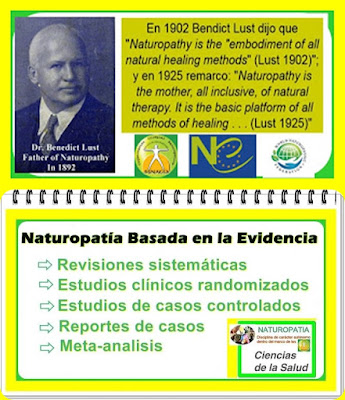 La Naturopatía como profesión existe desde que Benedict Lust, a finales del siglo XIX, expresó la firme convicción de que la Naturopatía requería un conocimiento diferente al conocimiento médico. Describió lo que para el era la función propia de la Naturopatía: propiciar a la persona un entorno en las mejores condiciones para que la Naturaleza actúe sobre él.. Según Benedict Lust la Naturopatía tiene como objetivo: “to reach and transform and transfigure everyday lives” (1905, 319). De ahí que la Naturopatía la concebimos como disciplina profesional cuyo objeto es, en el plano individual la autogestión de la salud; y en el plano social, la cultura de la salud; entendiendo que la persona (individuo-naturaleza-sociedad) en interacción continua con su medio natural y social vive experiencias de salud en mayor o menor grado.