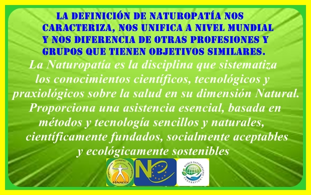 La Organización Colegial Naturopática tiene su justificación en tanto en cuanto busca y profundiza en el bien común de la profesión Naturopática sin excepción alguna, fomenta la identidad profesional y el entendimiento entre sus miembros para que activamente demanden un futuro mejor para la profesión. Por ello, insistimos en que la Definición de Naturopatía nos caracteriza, nos unifica a nivel mundial y nos diferencia de otras profesiones y grupos que tienen objetivos similares. Es lo que guía nuestras actividades.