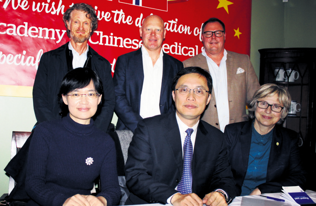 Ole Jørgen Frydenlund y Erik Vinje Olbjørn dirigen la clínica St. Olav Eye, y durante varios años han llevado a pacientes al Eye Hospital en Beijing para recibir un tratamiento prolongado de TKM allí. Esto ha llevado a una estrecha colaboración con el hospital, y especialmente con el profesor Liang Lina. Juntos, llegaron a la conclusión de que tratarán de conseguir un hospital integrado en Tønsberg / Oslo, y como parte de esto, vinieron varios investigadores y el presidente Luqi Huang.