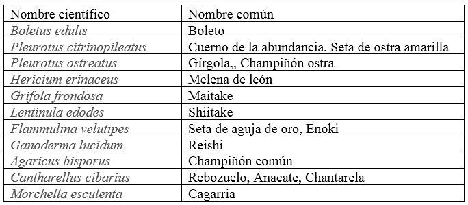 Aquí hay una lista de hongos medicinales comestibles y comunes en orden de contenido de ergotioneina de mayor a menor, aproximadamente de acuerdo con lo que algunos estudios han informado. El uso de estos hongos como alimento ofrece muchos beneficios y debe ser alentado. Sin embargo, la producción de ergotioneína en la industria nutracéutica probablemente no esté lejos, utilizando síntesis en la levadura Saccharomyces cerevisiae .