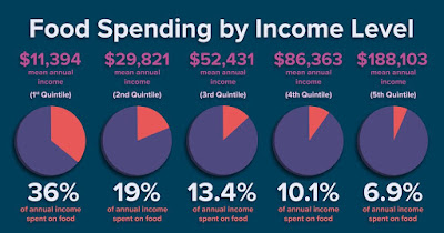 Si el quintil más rico gasta el 1% de su presupuesto anual ($ 188,103) en frutas y verduras, eso equivale a $ 1,881.03 al año … (o $ 36.17 a la semana) .