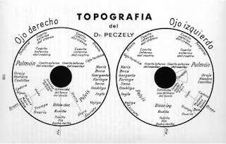 Von Peczely elaboró uno de los primeros gráficos europeos del iris vinculado con el resurgimiento moderno de esta técnica, publicando en el año 1886, en alemán, la primera topografía del iris en la Hoja semanal homeopática.
